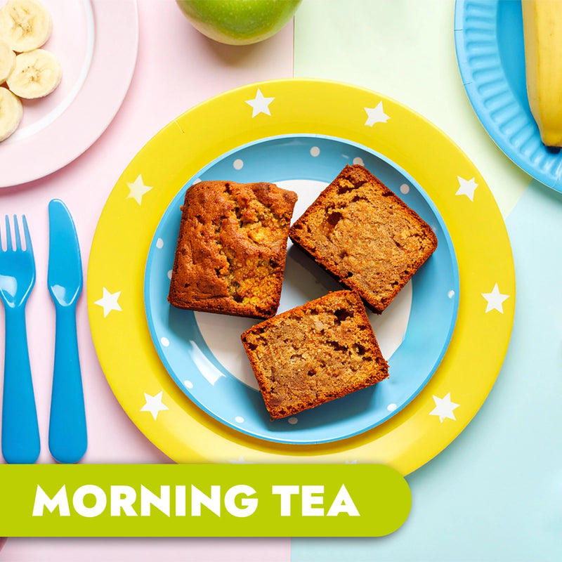 Wholemeal banana cake slices & fresh seasonal pre-cut fruit