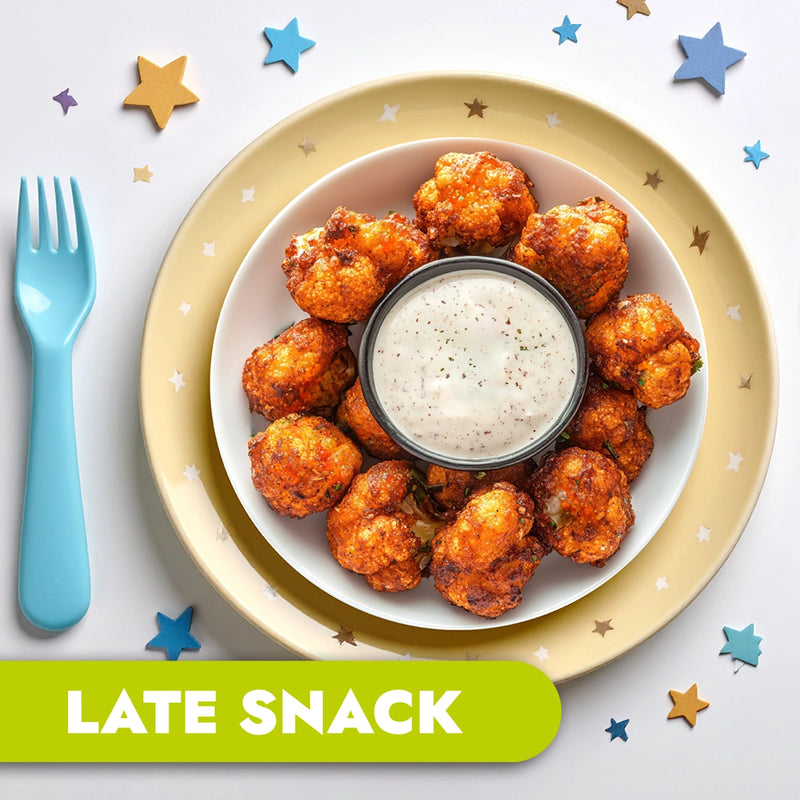 Cauliflower popcorn with herb yoghurt dip