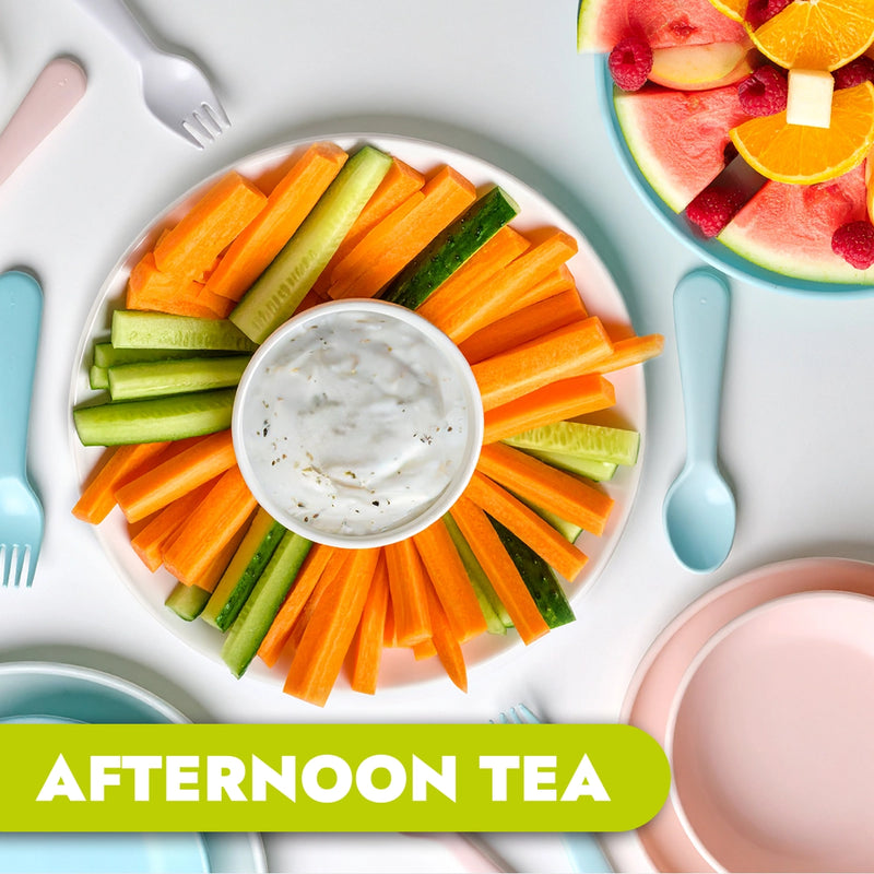 Vegetable sticks with yoghurt & herb dip plus fresh seasonal fruit platter