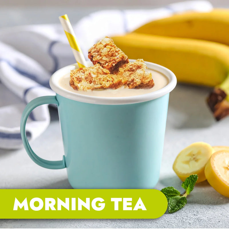 Banana smoothie topped weetbix bites & fresh fruit