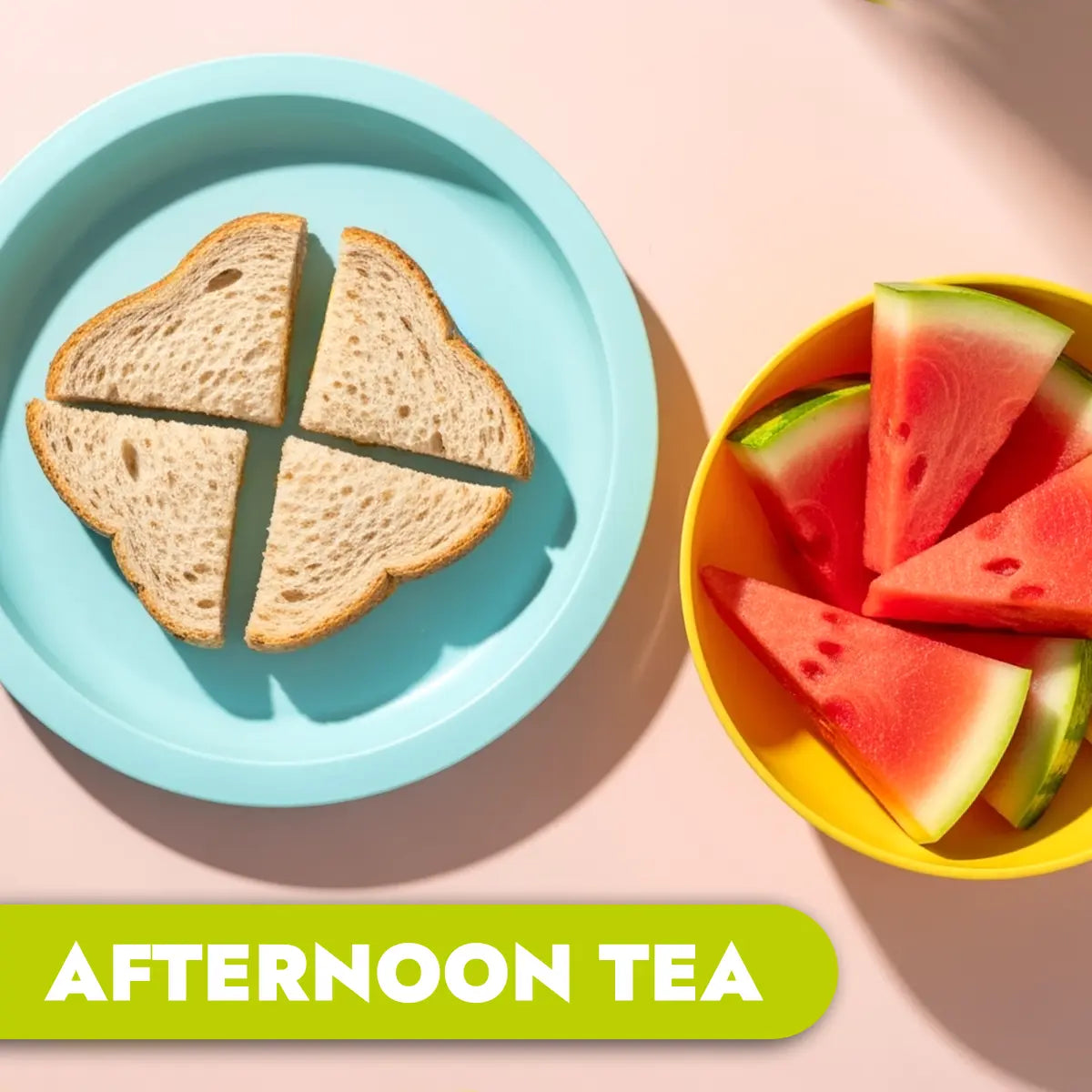 Wholegrain Vegemite sandwiches & fresh sliced fruit.