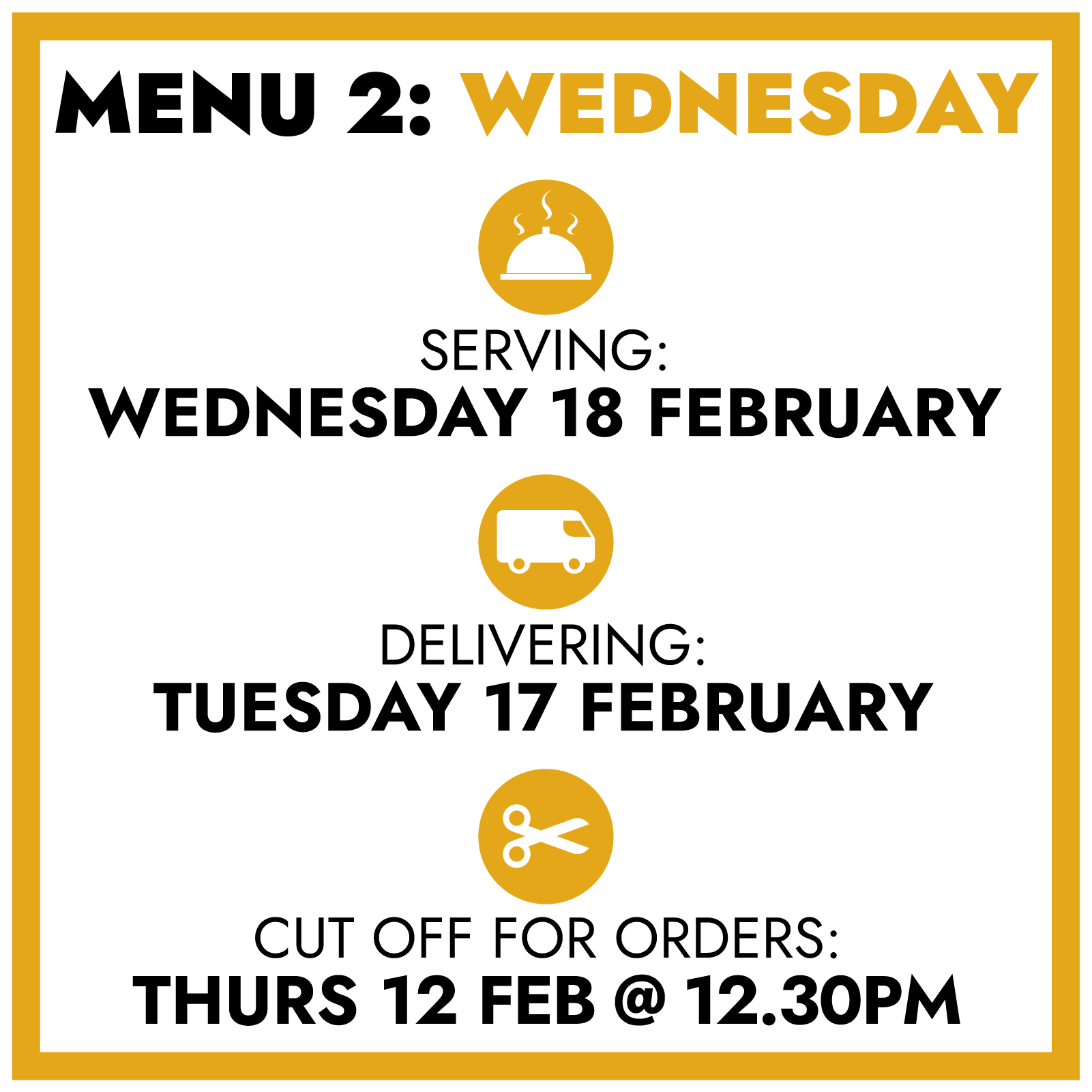 Note: All age groups are served age appropriate variations of the daily menu, including purees and softer foods.