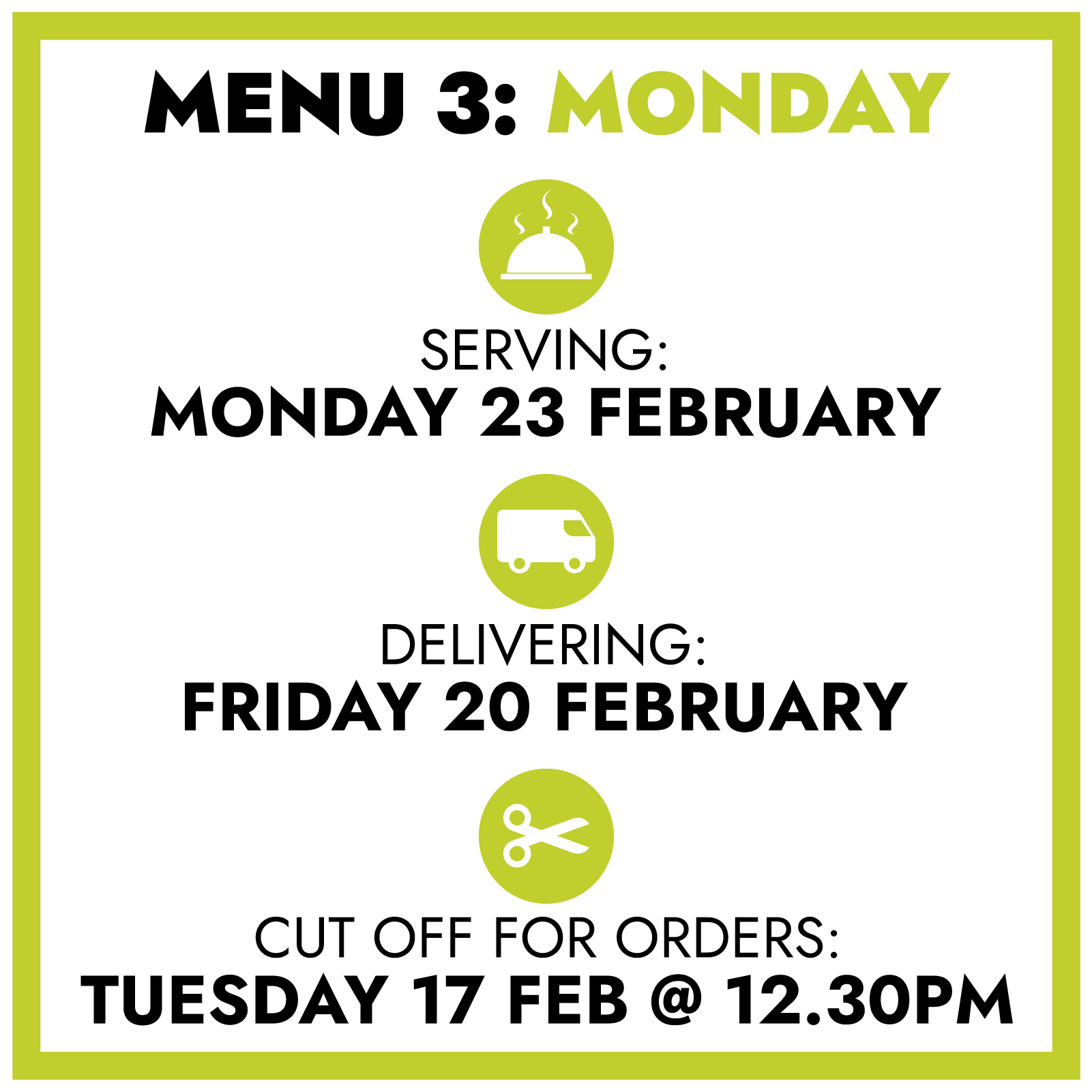 Note: All age groups are served age appropriate variations of the daily menu, including purees and softer foods.