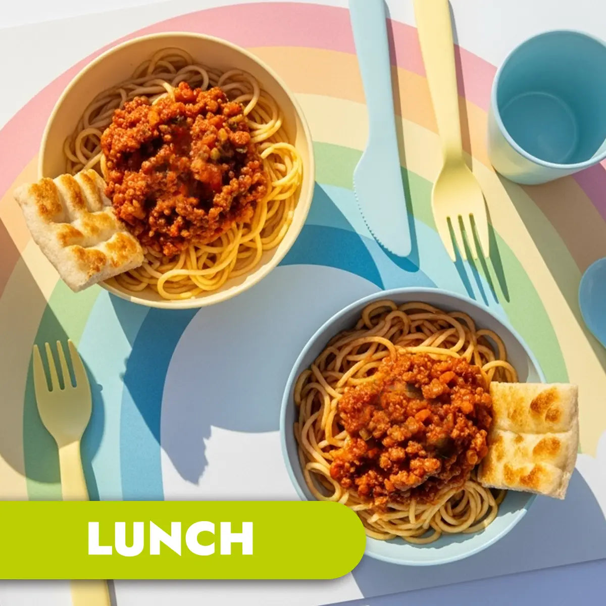 Hide & seek vegetable bolognese with Turkish garlic bread.