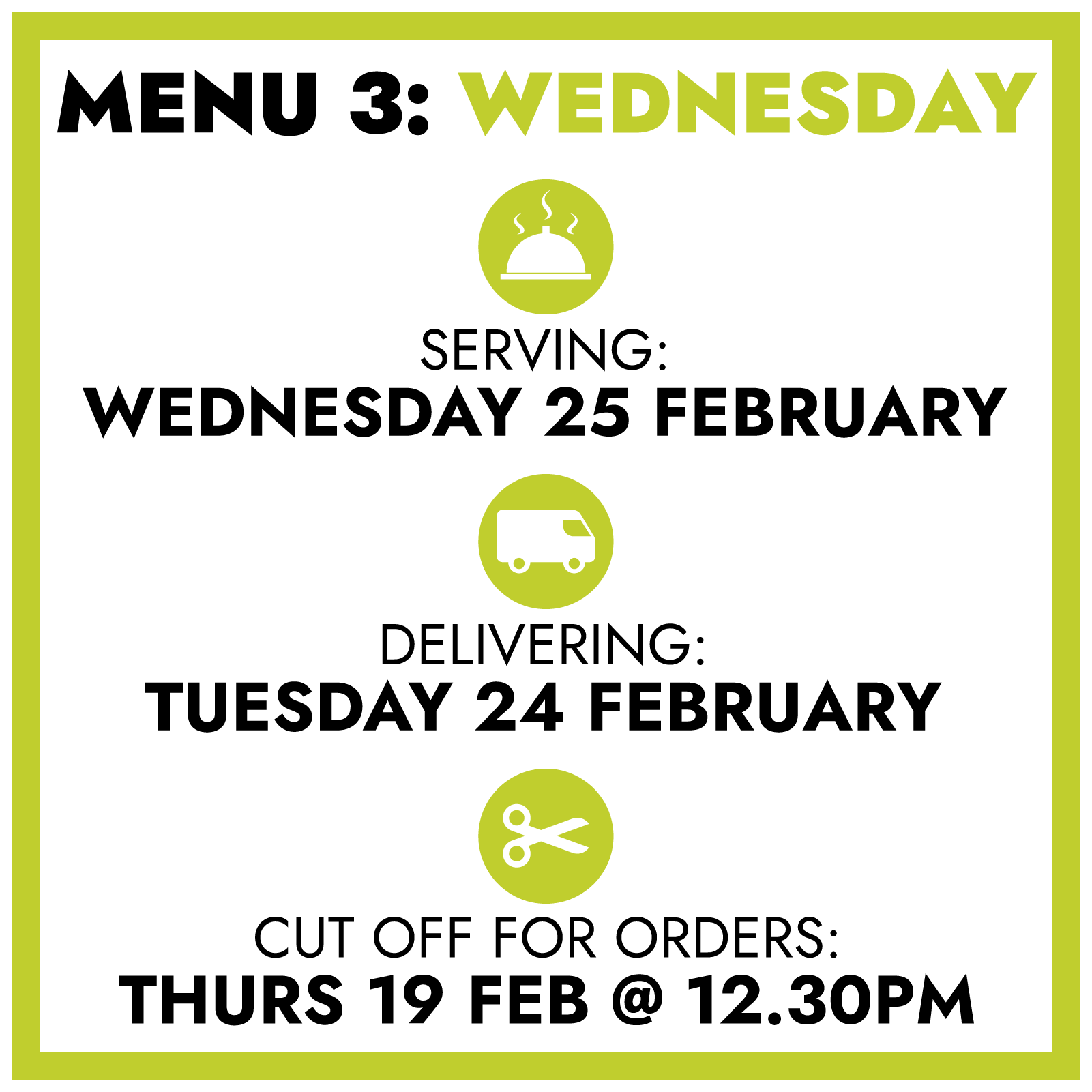 Note: All age groups are served age appropriate variations of the daily menu, including purees and softer foods.