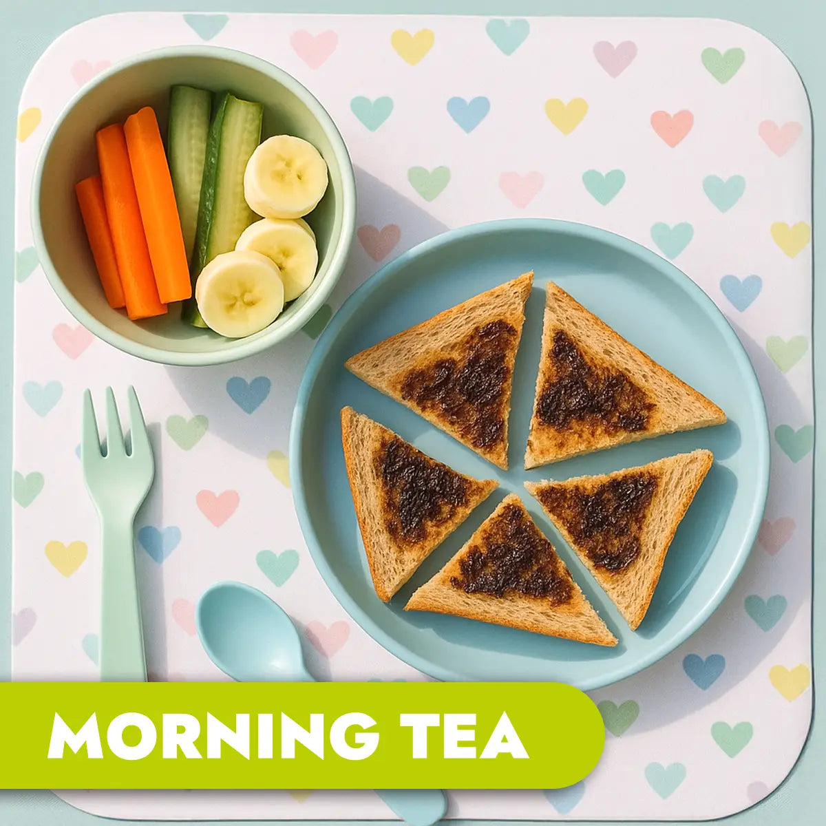 Wholemeal Vegemite toast & fresh, seasonal fruit & vegetables.