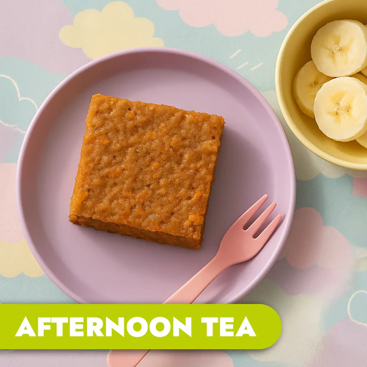 Carrot & pumpkin slice served with fresh, seasonal, sliced fruit.