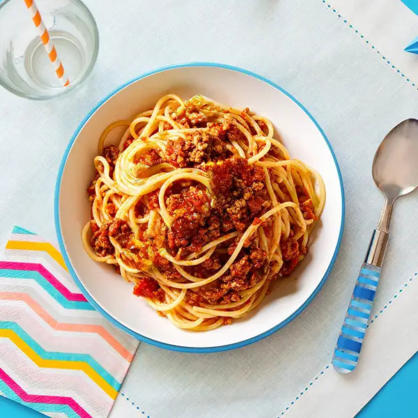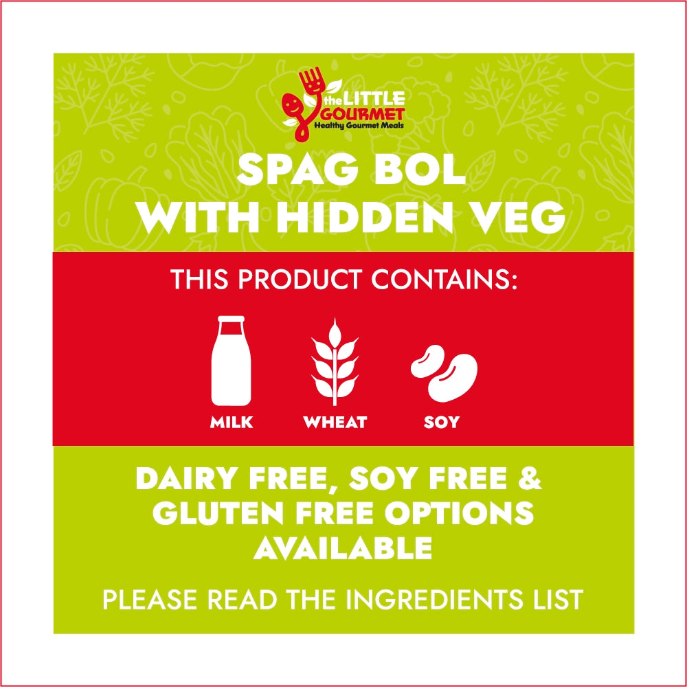 Lean beef mince, *Spaghetti, Onion, Garlic. Carrot. Celery, *Tomato passata, Olive oil, *Parmesan cheese, Dried Italian herbs.